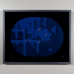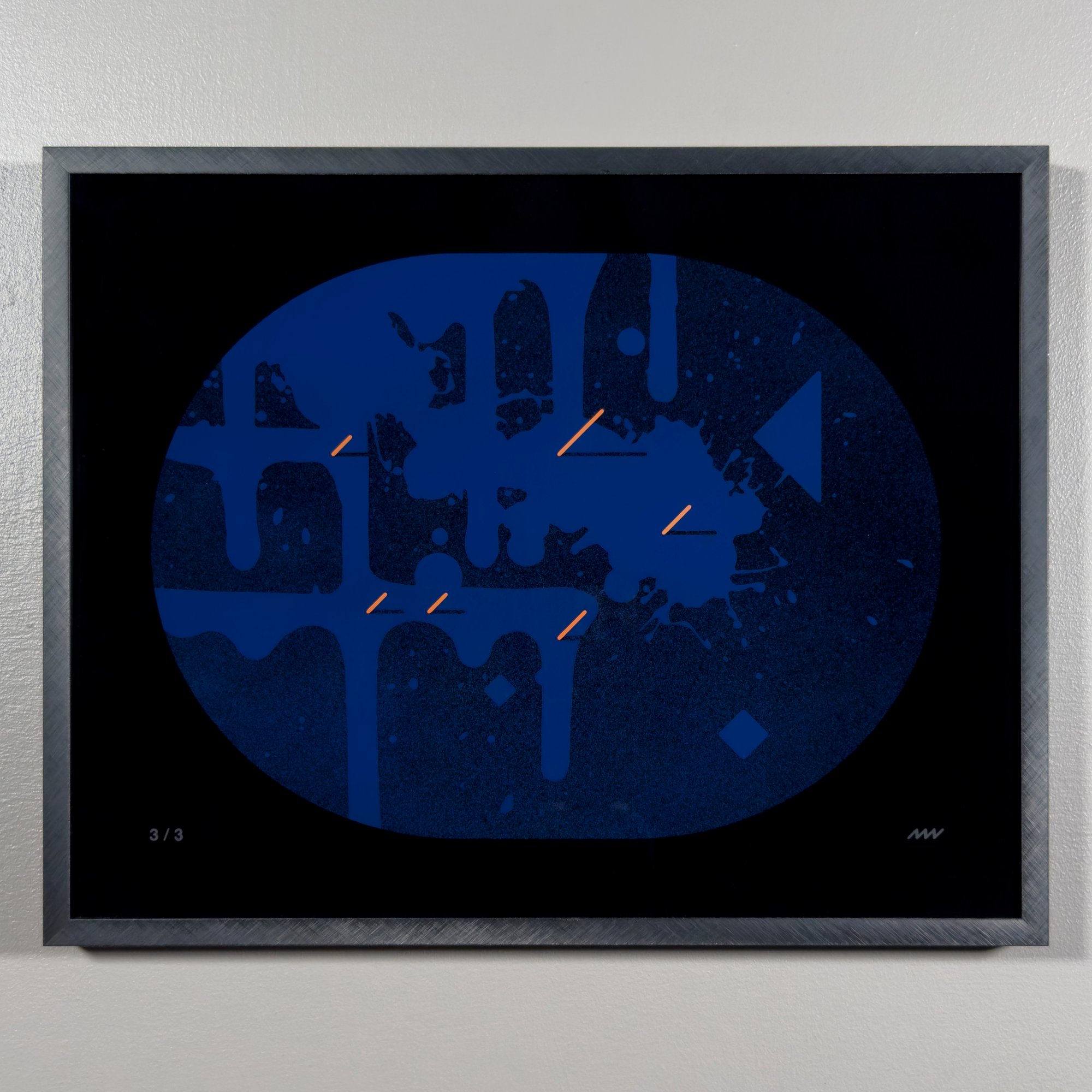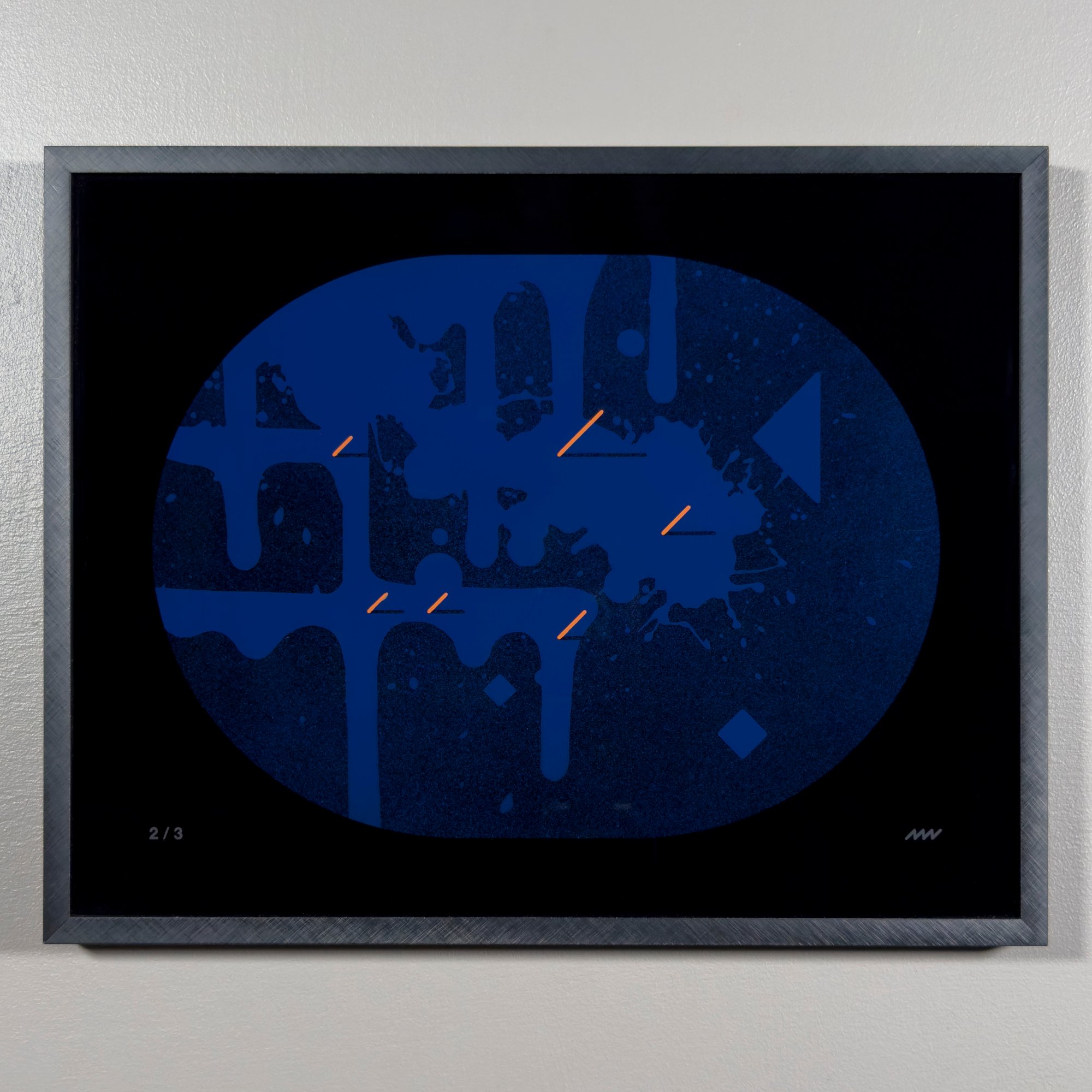acrylic spray paint on glass, in manufactured aluminum frame
